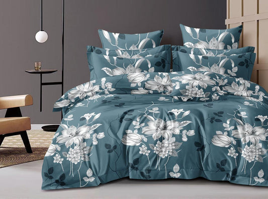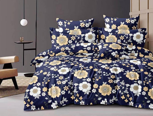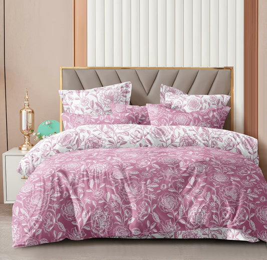 Premium Floral Bloom Design Cotton Elastic Fitted King Size Double Bed Bedsheet with 2 Pillow Covers