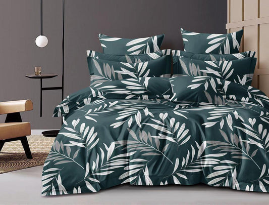 BOGO Premium Floral Bloom Design Cotton Blend Elastic Fitted King Size Double Bed Bedsheet with 2 Pillow Covers