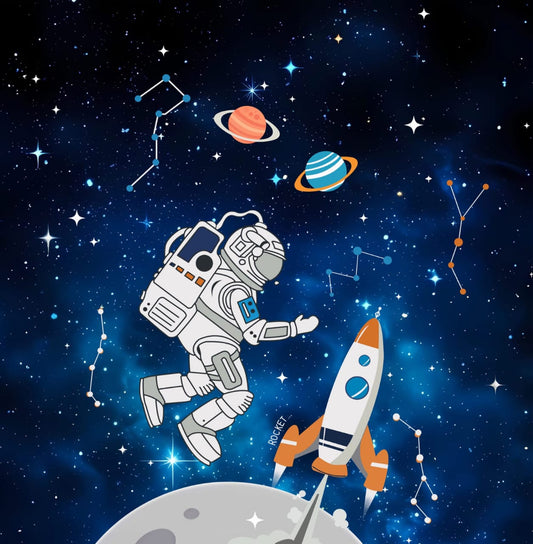 100% Cotton Kids Spaceship Double Bed Bedsheet with Pillow Covers - 250 Thread Counts