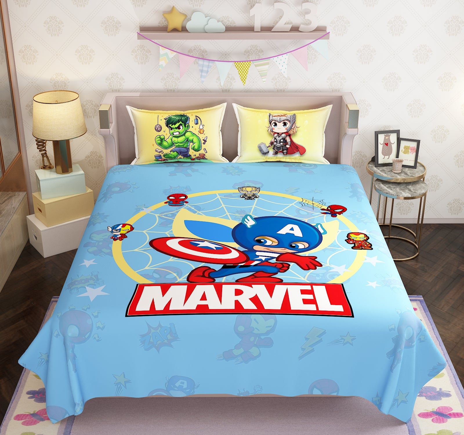 100% Cotton Kids Marvel Double Bed Bedsheet with Pillow Covers - 250 Thread Counts