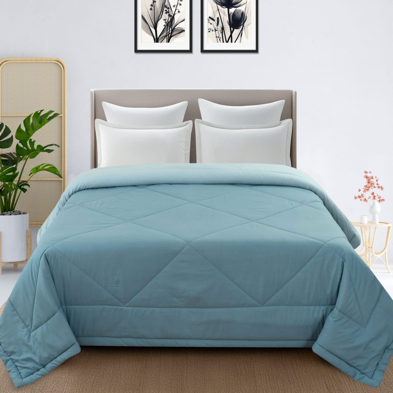 Switch your bedroom vibe in seconds with this dual-sided solid color comforter. A perfect blend of elegance and versatility to match any room aesthetic.