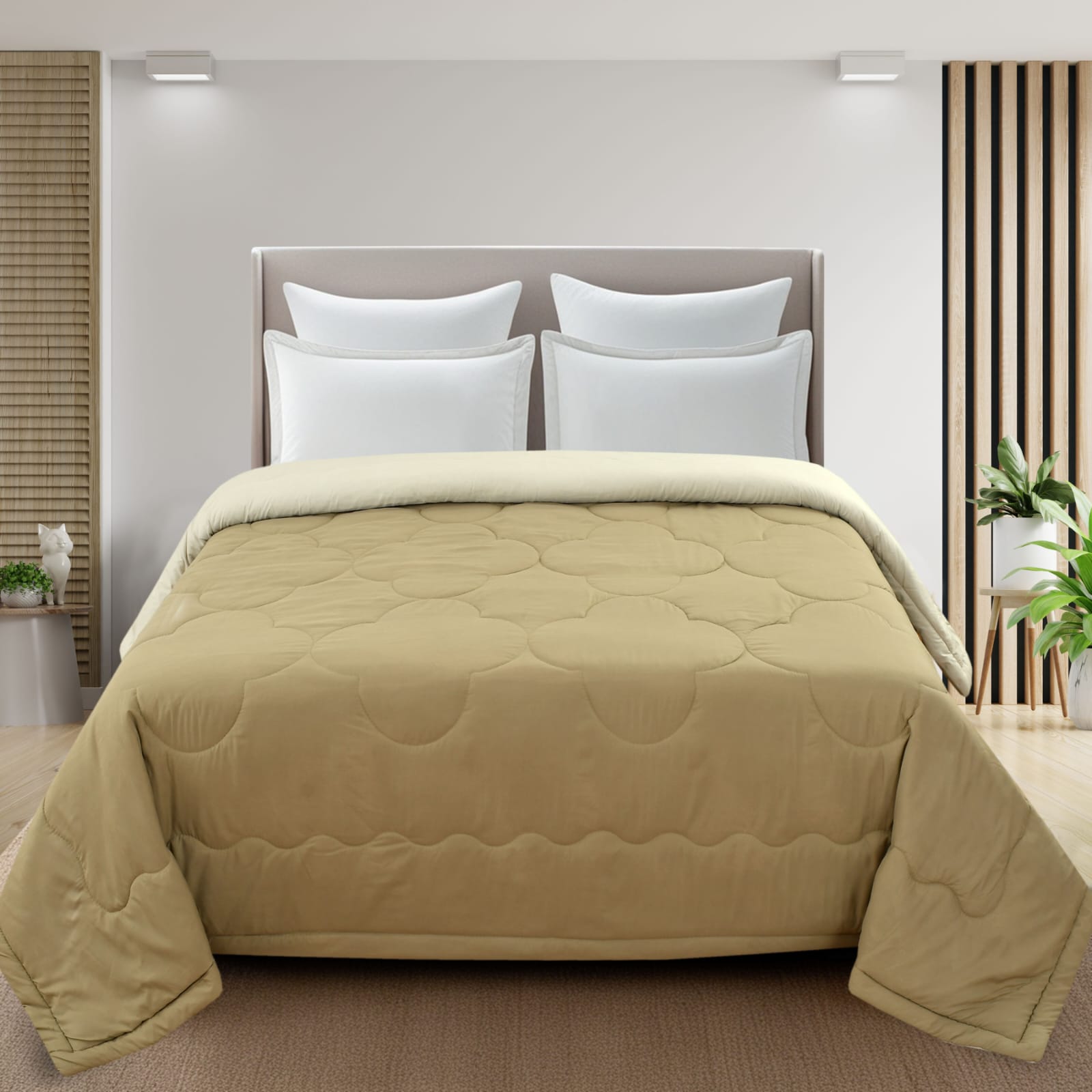Beige Solid Summer Touch Double Bed AC Comforter/Blanket Reversible by Fabicra